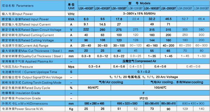 LGK-40IGBT电源1台,气冷切割枪1把,8mm2接地电缆1根